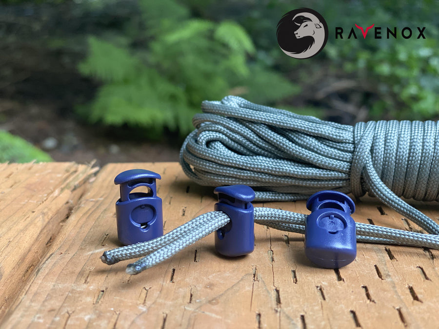 Ravenox Navy Blue Primoloc Cord Locks are designed to fit two ends of 550 Paracord, also known as parachute cord. These cord locks can be used on everything from shoelaces, pack drawstrings, pants closures, Paracord products, and a variety of outdoor and gym products.