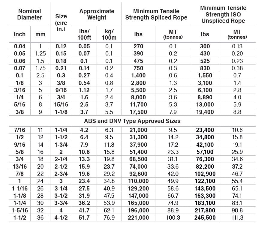 - Select sizes of 12 strand HMPE ropes are ABS & DNV type approved