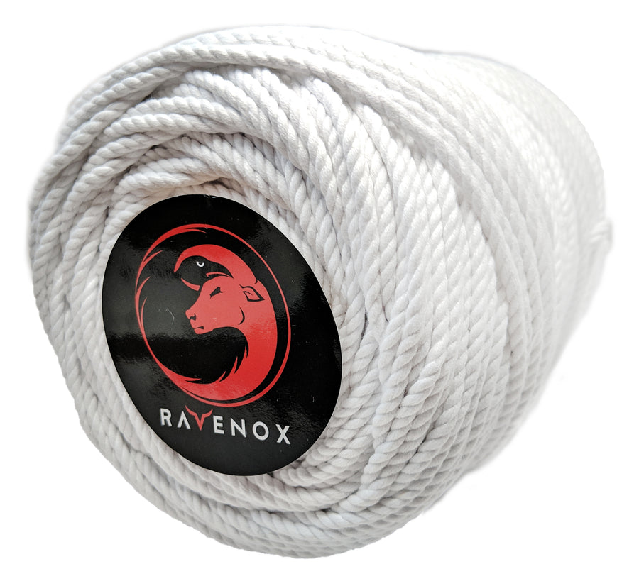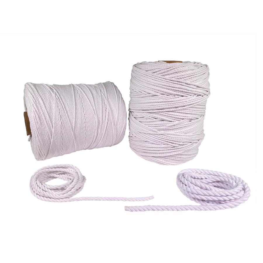RAVENOX USA-MADE TWISTED COTTON MACRAME CORD IN SNOW WHITE IS AVAILABLE IN MULTIPLE DIAMETERS AND LENGTHS