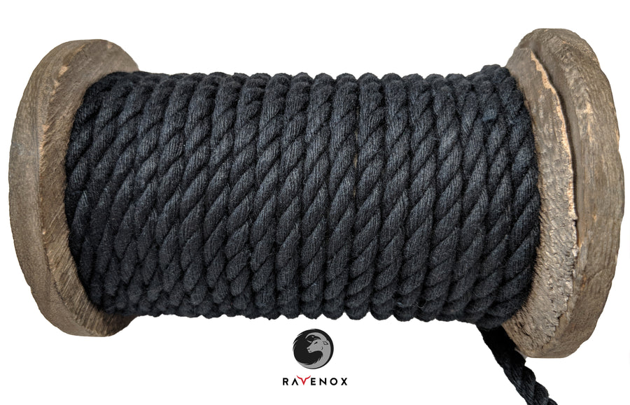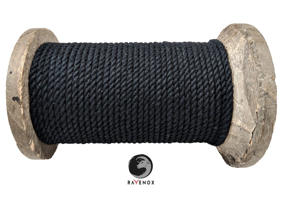 RAVENOX USA-MADE TWISTED COTTON ROPE IN BLACK IS AVAILABLE IN MULTIPLE DIAMETERS AND LENGTHS