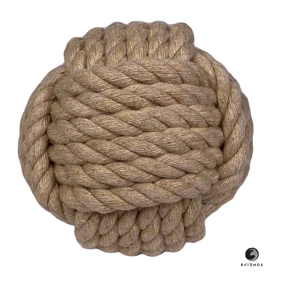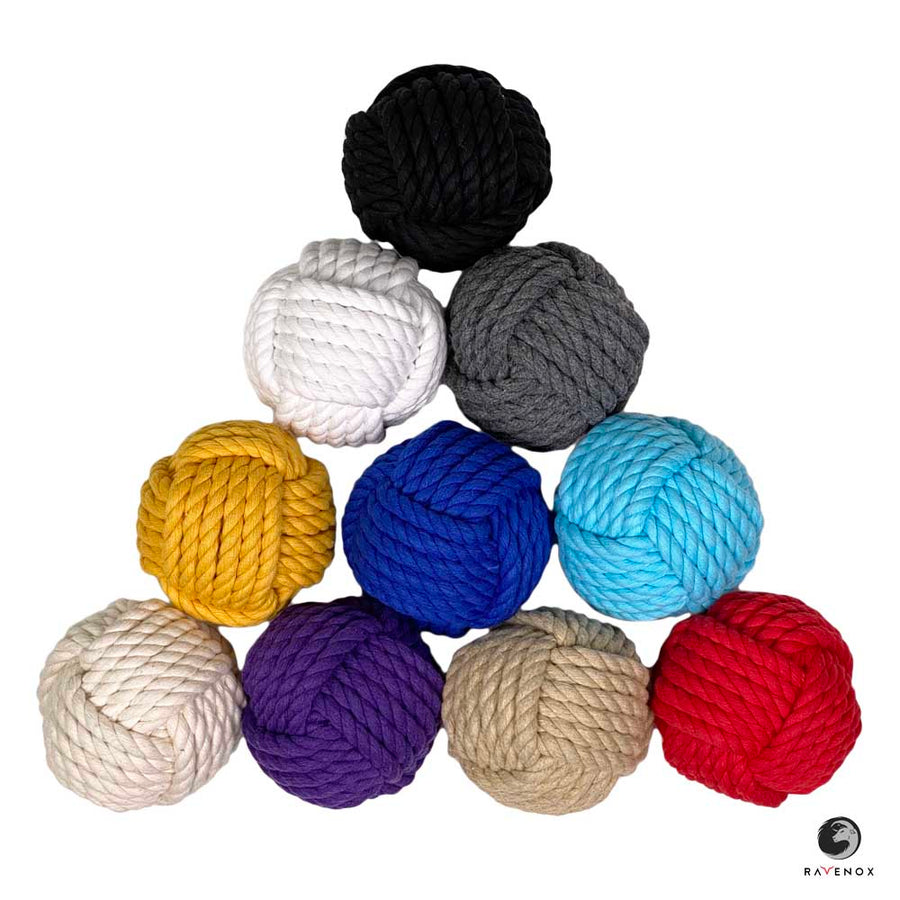 Add a touch of nautical flair to your home with some twisted cotton rope balls. Perfect for coffee tables, fireplace mantles, tabletops, and centerpieces. Also commonly used for wedding table number holders, receptions, cardholders, and more. Add a few to a bowl or large vase for a unique look. Each ball is made with Ravenox cotton rope and wrapped around a tennis ball. Our rope masons pass the rope from our machine and into our rope weaver's hands where they hand weave each one of these custom balls.