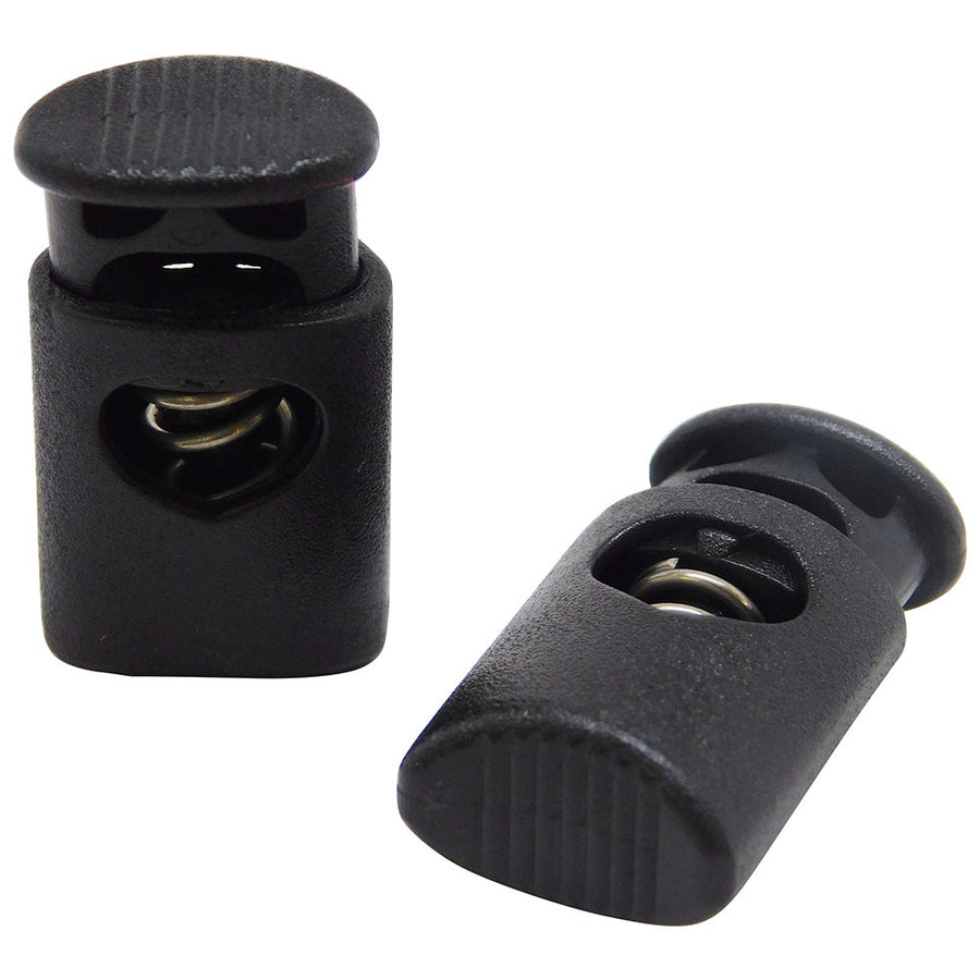 Crown Cord Lock Ends Availability: In black, royal blue, red, or white with a range of packs from 10-packs, 25-packs, 50-packs, 500-packs, and 1,000-packs. Ravenox also has cord locks such as the toaster ellipse, standard, double hole kettle drum, pumpkin, SurMount CL, Micro, Bowling Pin, Square Block Cube, Barrel, or Barreloc, Dual Circle, Turtle, Oval, Wheeled, Round Bubble Ball, Cyberian, Dual Hole Detachable, Dual Hole Bow, Single Hole Bow, CSL, Sliploc, Extra Large, Cylinder and Miniloc.
