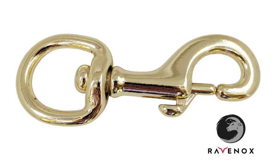 Use Ravenox 1-1/8-inch Swivel Snaps to quickly and easily secure rope, wire, and cordage for a variety of indoor and outdoor applications. Easily attach 5/8-inch, 3/4-inch, 7/8-inch, 1-inch and 1-1/8-inch rope, cord, or cable to the eye bolt for a strong and secure hold. Brass plated swivel snaps will resist corrosion and freezing so that you can be sure they will stand up in rain, snow, and humidity, while always maintaining their strength and integrity. Ideal for indoor or outdoor use for tie-downs, securing cables, hanging items, dog leashes, horse leads, SCUBA Diving, luggage repair, camping, marine applications, and more. With a 40-pound safe working load, our product is safe for medium duty projects.