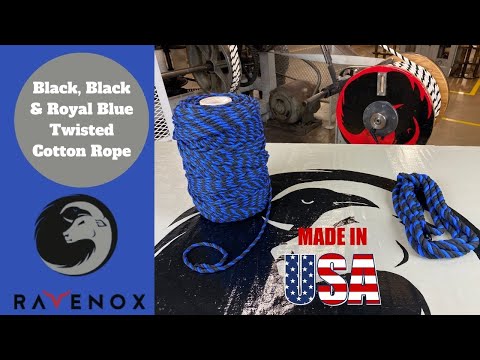 Ravenox USA-Made Black, Black, and Blue Twisted Cotton Rope is available in various diameters and multiple lengths.
